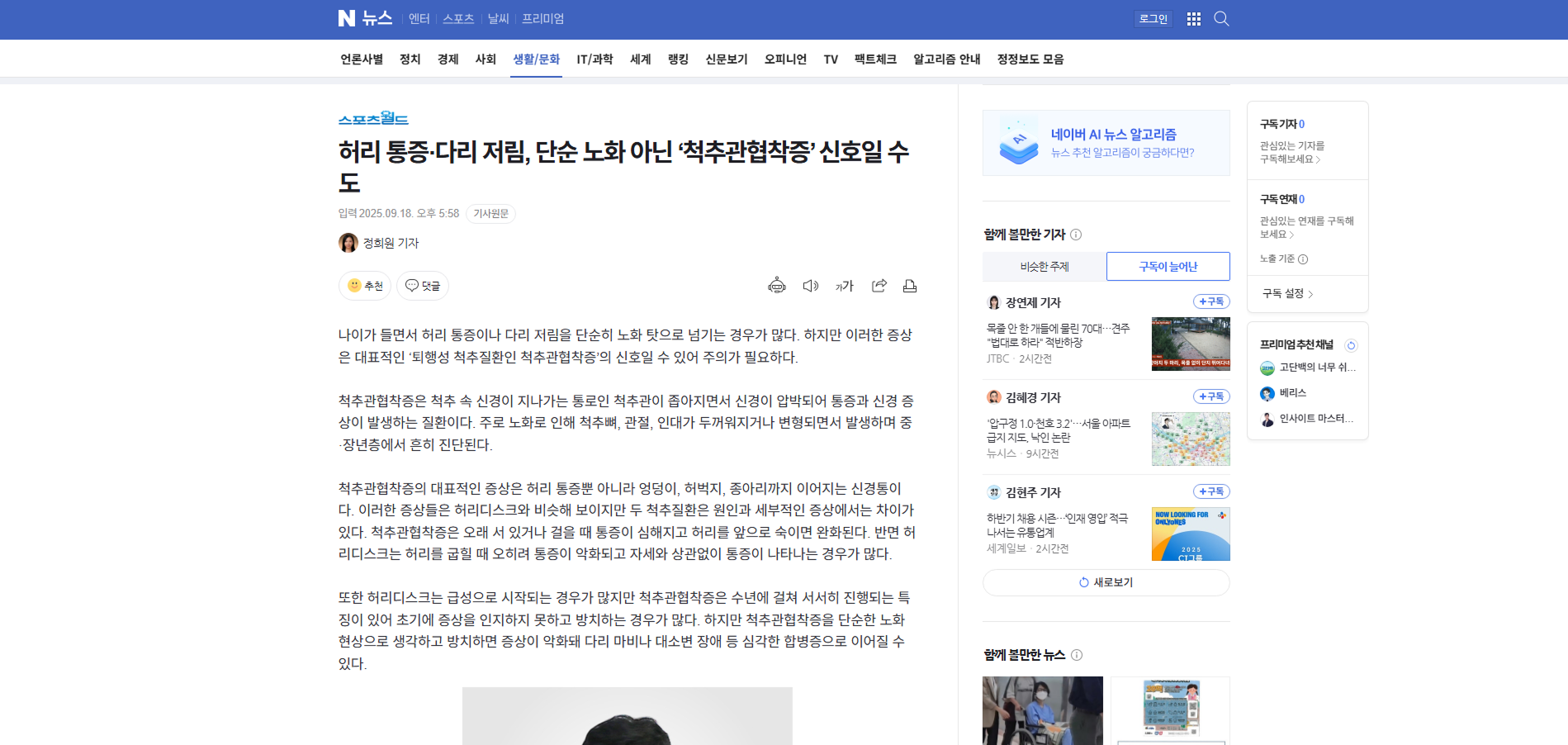 김태신 신촌연세병원 신경외과 과장은 “척추관협착증은 단순한 노화 현상이 아니라 치료가 필요한 척추질환”이라며 “허리 통증이나 다리 저림이 반복된다면 조기에 정확한 진단을 받아야 향후 합병증을 막고 삶의 질을 지킬 수 있다”고 강조했다.