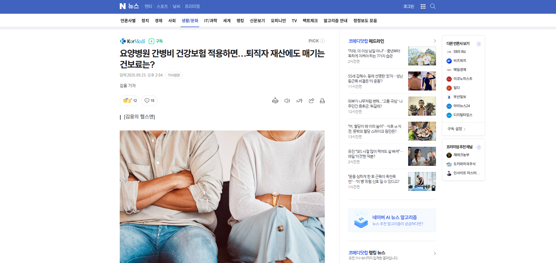 ![퇴직자들의 고통인 건보료 인상에만 매달리지 말고 의사들의 과잉 진료, 환자들의 의료 쇼핑, 외국인 정책, 가짜 요양병원 발본색원 등 건보 재정이 줄줄이 새는 구멍부터 막아야 한다. [사진=게티이미지뱅크]](https://imgnews.pstatic.net/image/296/2025/09/23/0000093229_001_20250923140418243.jpg?type=w860)