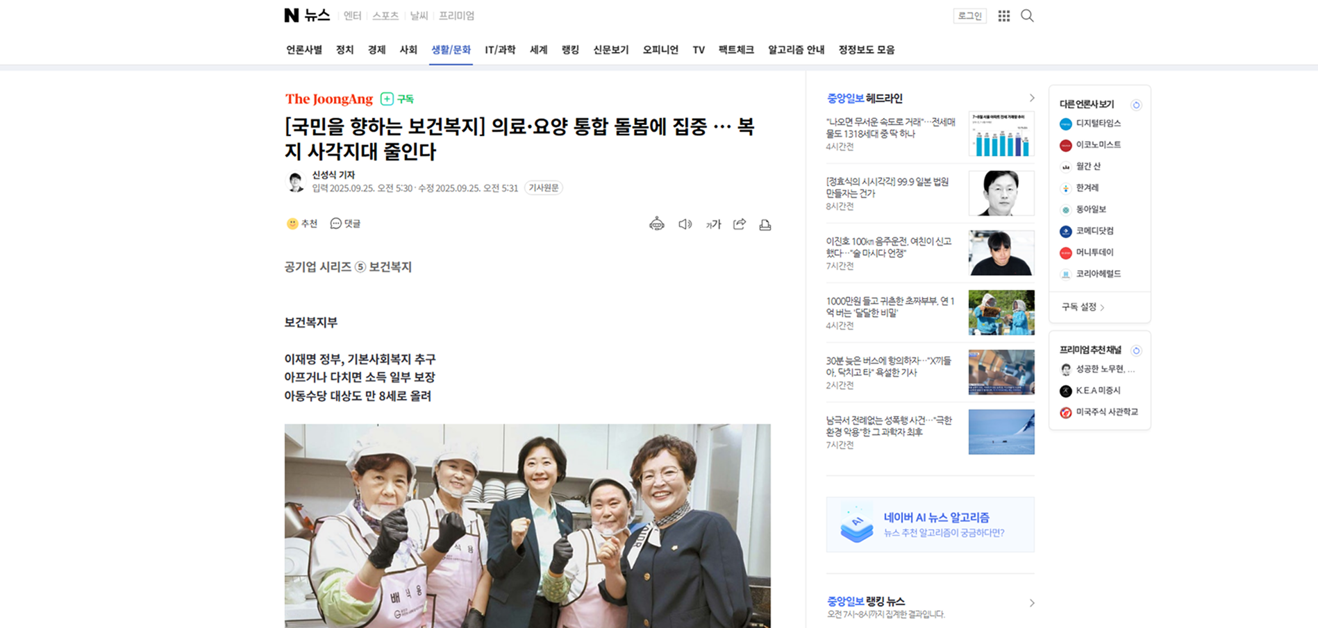![이스란 보건복지부 제 1차관(가운데)이 8월 결식아동 급식 지원 현장을 방문했다. [사진 복지부]](https://imgnews.pstatic.net/image/025/2025/09/25/0003471702_001_20250925053146569.jpg?type=w860)