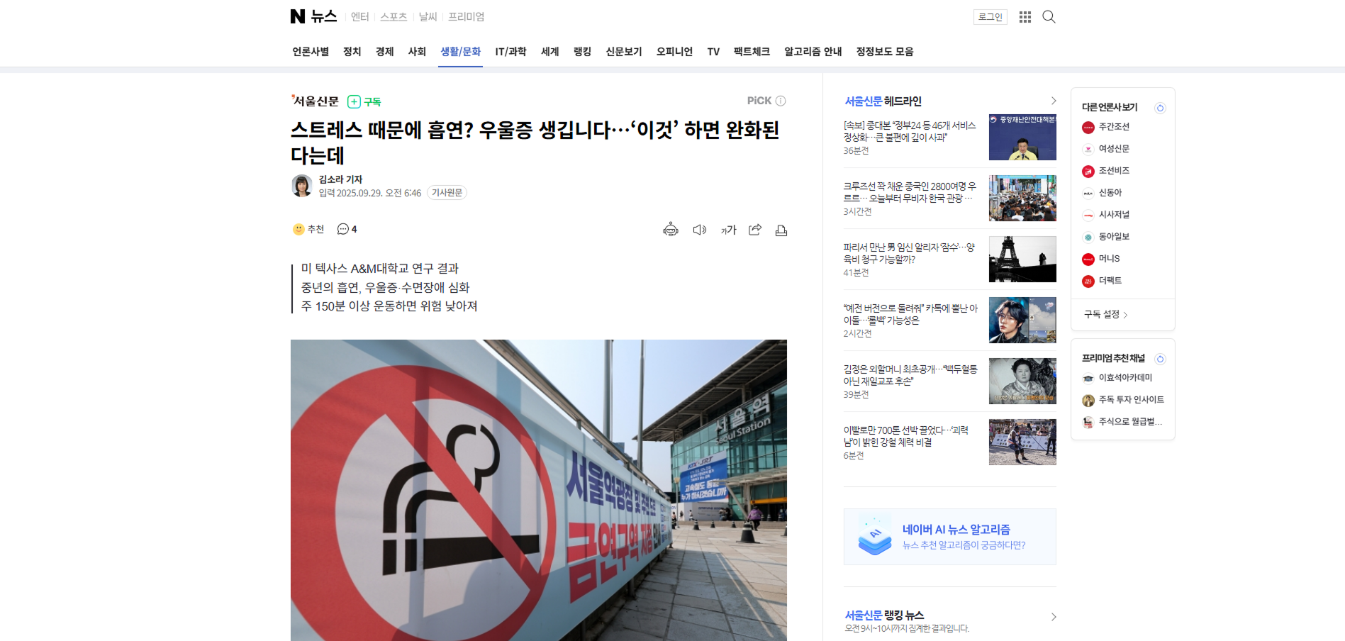 연구를 이끈 노태현 조교수는 “흡연으로 인한 신경화학적 변화는 우울증 증상을 악화시켜 수면의 질을 저하시킬 수 있다”면서 “신체 활동은 이러한 상태를 개선할 수 있다”고 설명했다.