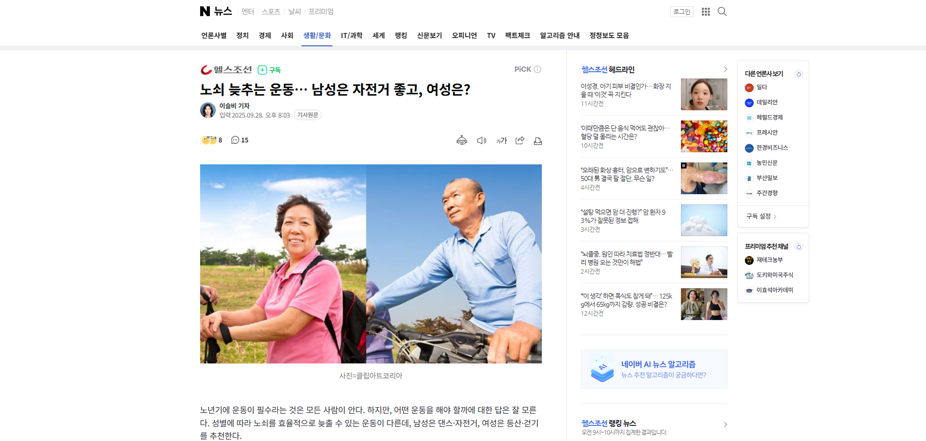 노쇠 늦추는 운동… 남성은 자전거 좋고, 여성은?