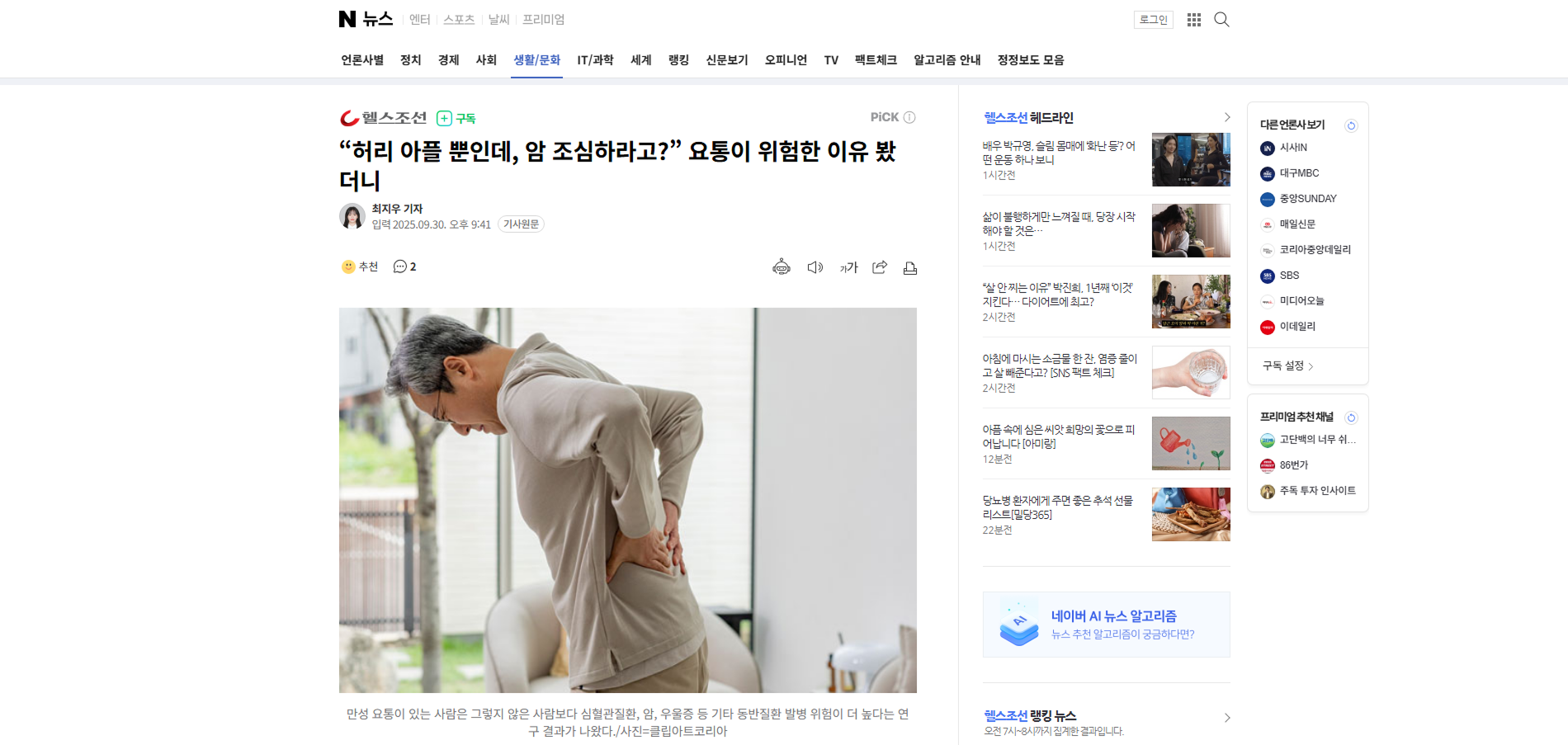 “허리 아플 뿐인데, 암 조심하라고?” 요통이 위험한 이유 봤더니