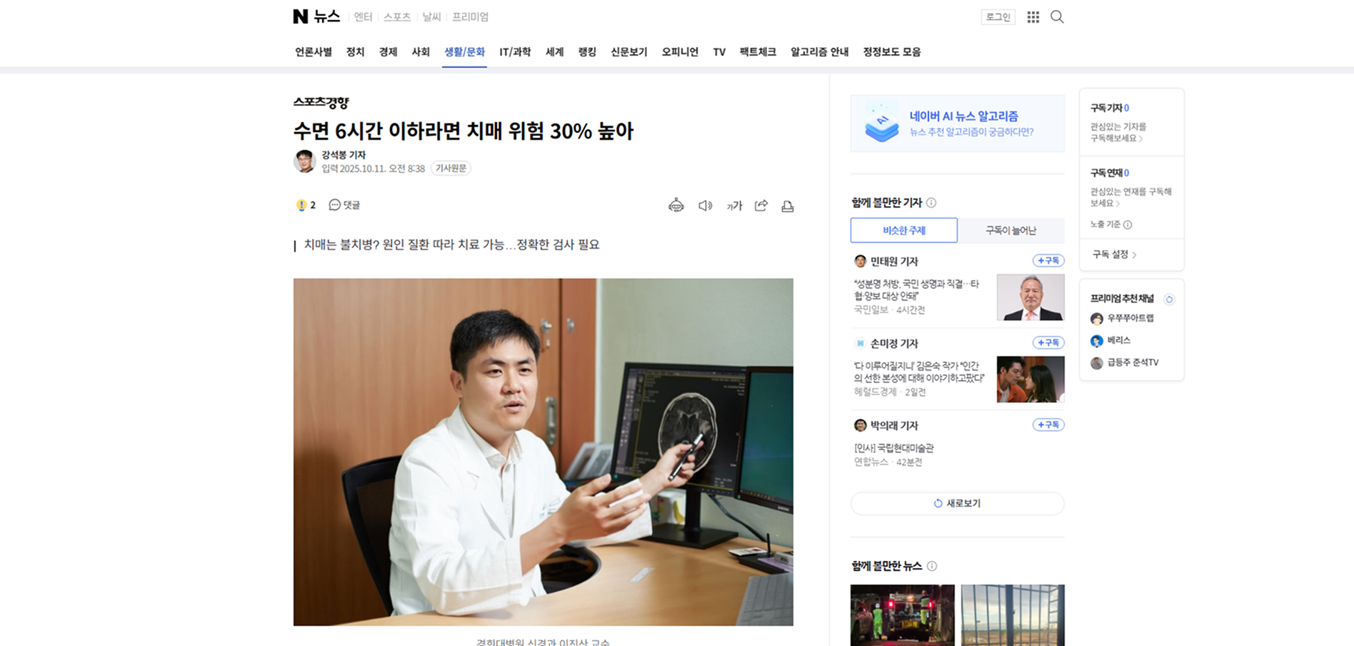 2021년 영국에서 진행된 장기 추적 연구에 따르면, 하루 수면 시간이 6시간 이하인 사람은 7시간 이상 자는 사람에 비해 치매 발병 위험이 30% 높았다.
