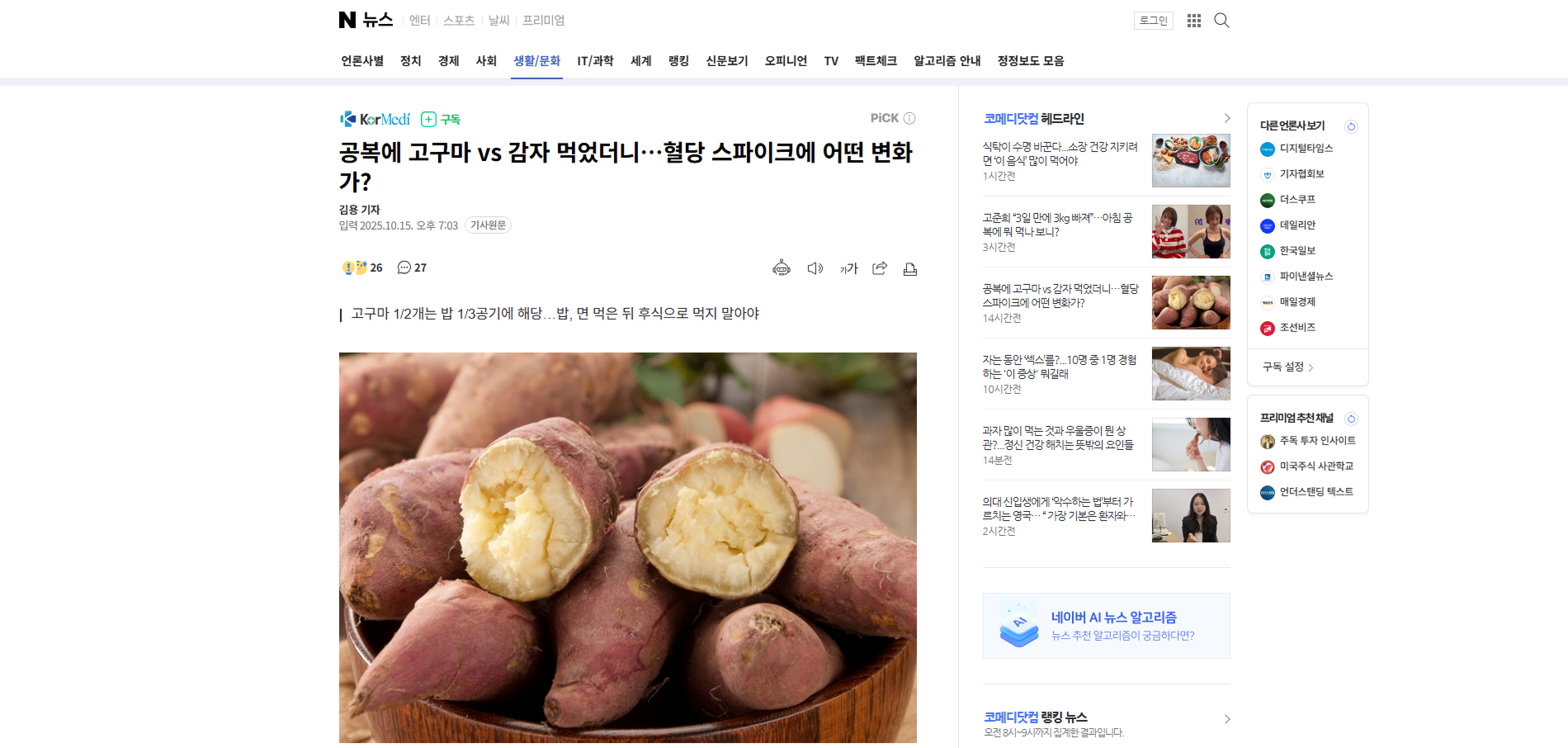 공복에 고구마 vs 감자 먹었더니…혈당 스파이크에 어떤 변화가?