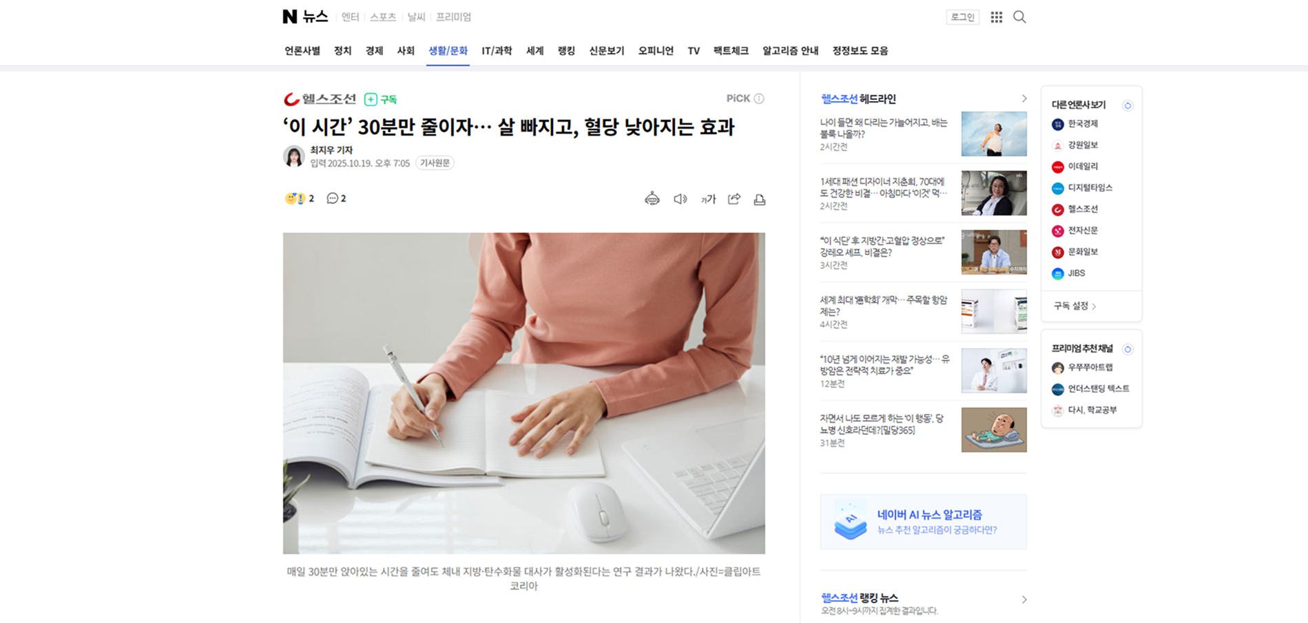연구를 주도한 타루 가스웨이트 박사는 “이번 연구 결과를 통해 앉아있는 시간을 30분 줄이는 것만으로도 긍정적인 대사 효과로 이어질 수 있다는 사실을 확인했으나 매주 150분 이상 중등도 강도의 신체활동 권고량을 따르면 더 큰 건강 이점을 누릴 수 있다”고 말했다.