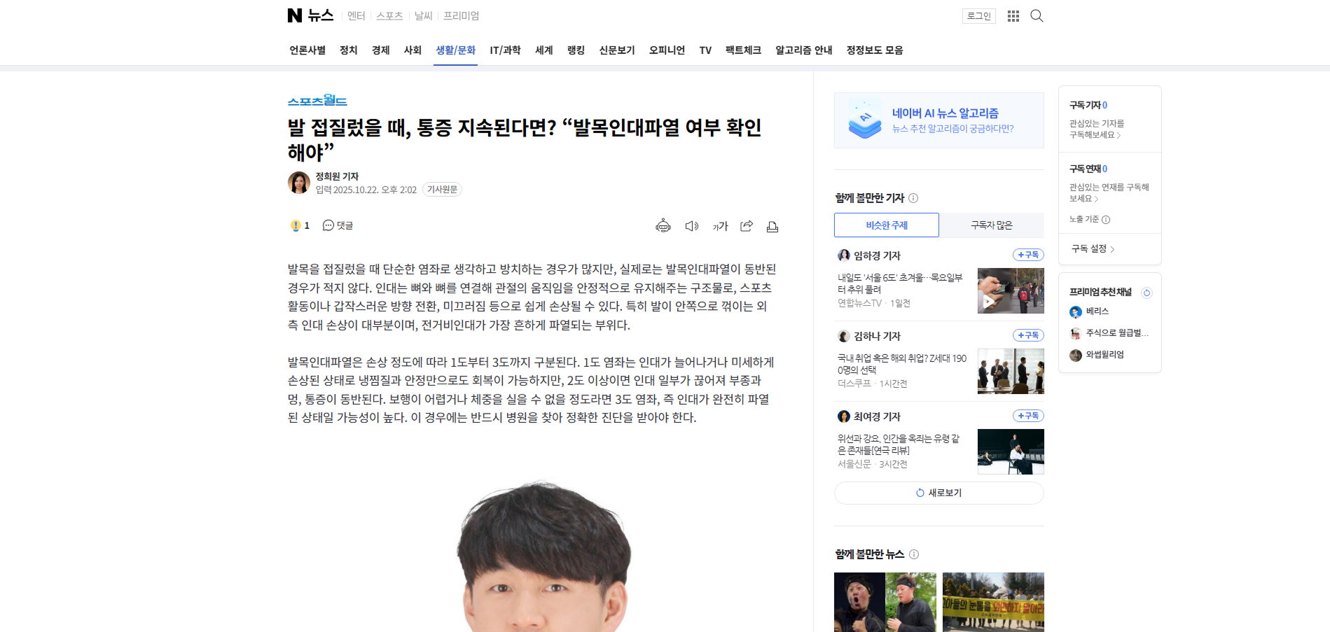 이어 “비수술적 치료로도 충분히 회복되는 경우가 많지만, 반복적인 부상이나 완전파열이라면 관절내시경을 통한 인대 봉합이나 재건술이 필요할 수 있다”며 “무엇보다 치료 후 꾸준한 재활과 근력 강화가 재발 방지의 핵심”이라고 덧붙였다.