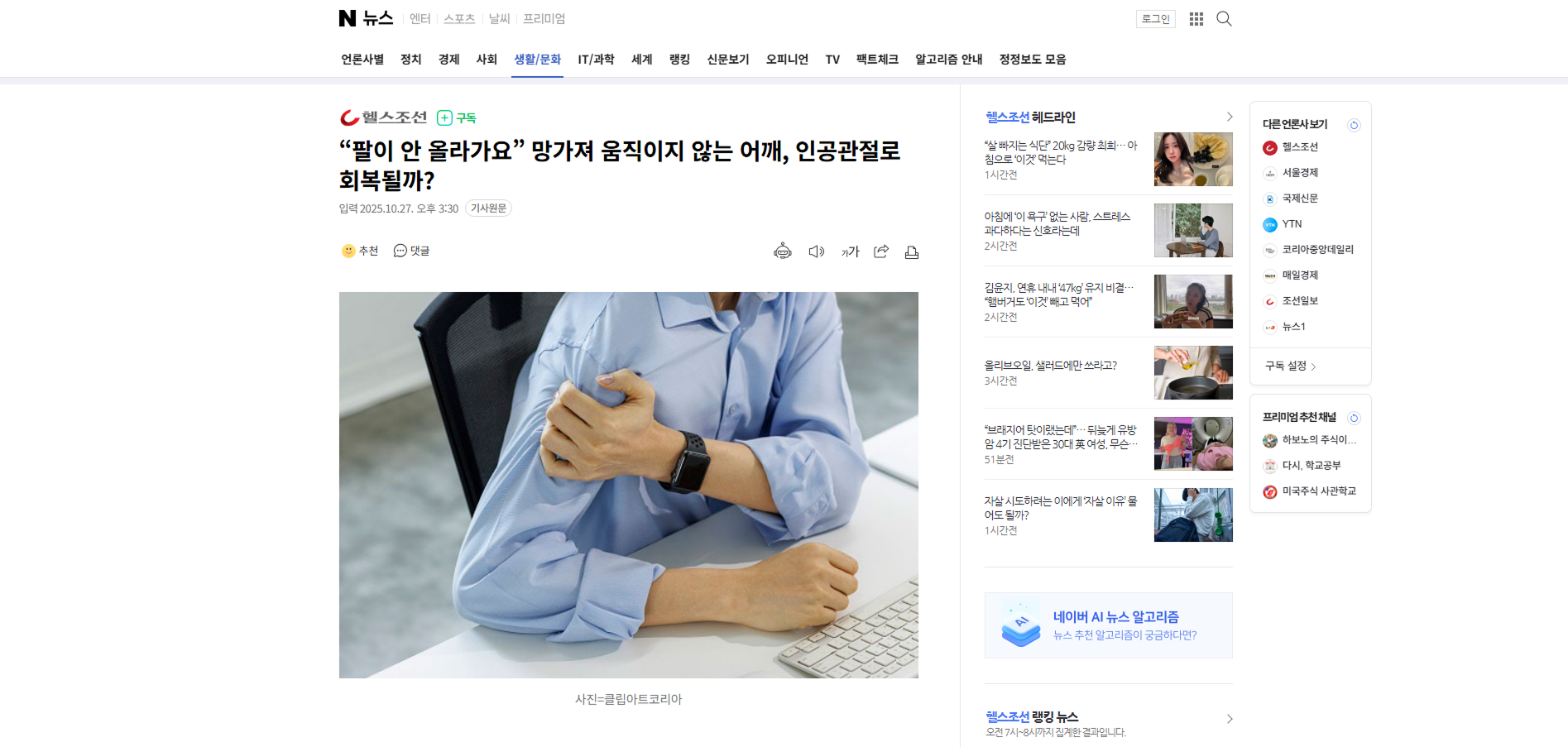 “팔이 안 올라가요” 망가져 움직이지 않는 어깨, 인공관절로 회복될까?