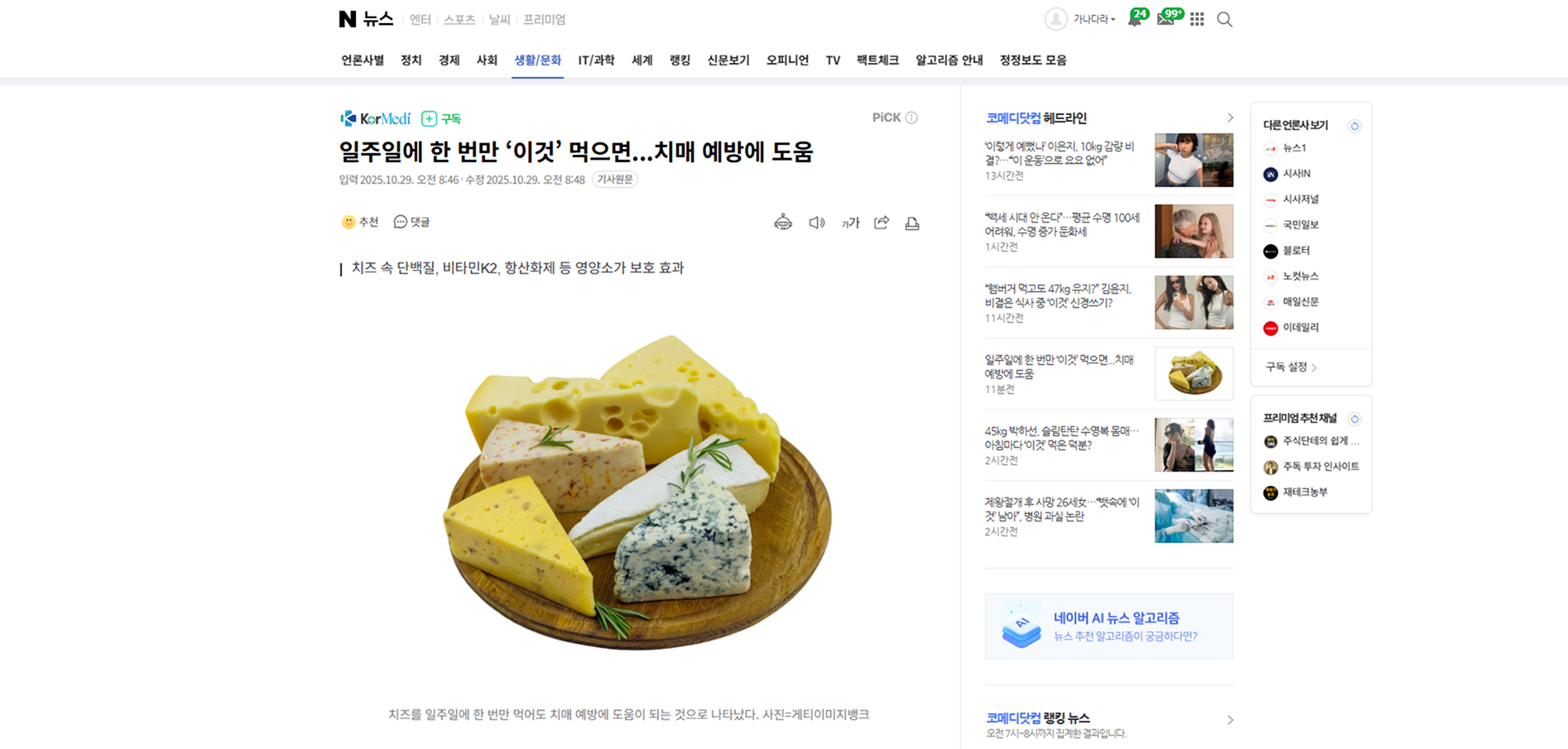 이번 연구 결과(Cheese Consumption and Incidence of Dementia in Community-Dwelling Older Japanese Adults: The JAGES 2019–2022 Cohort Study)는 국제 학술지 ≪영양소(Nutrients)≫에 실렸다.