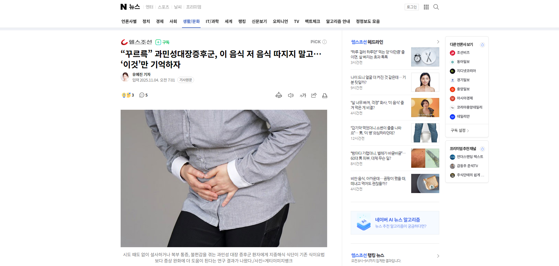 “꾸르륵” 과민성대장증후군, 이 음식 저 음식 따지지 말고… ‘이것’만 기억하자