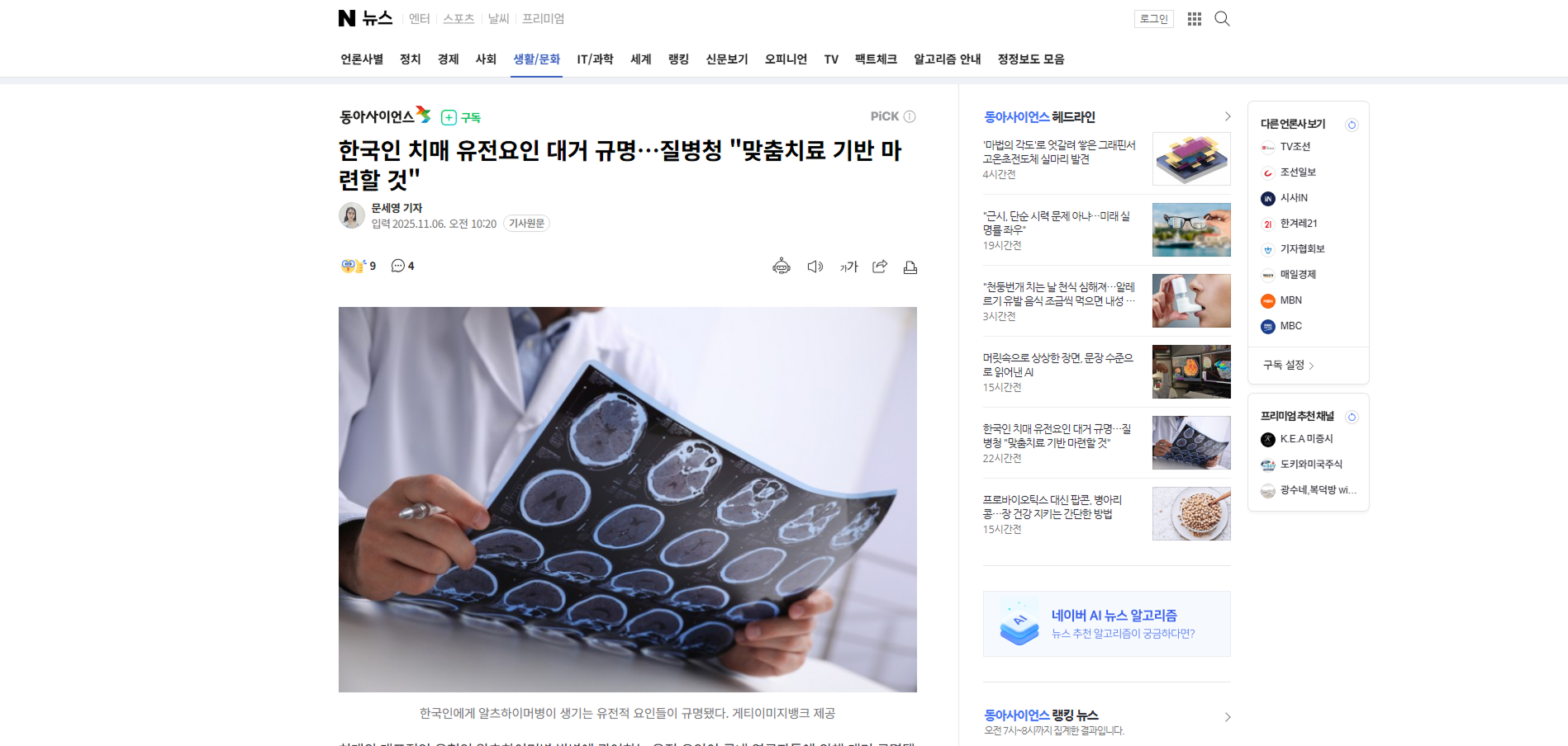 연구를 주도한 서상원 성균관대 의대 교수는 “임상 진단 중심의 기존 연구에서 벗어나 병리적 바이오마커(PET)와 유전체 정보를 결합해 알츠하이머병의 생물학적 기전을 직접 확인했다는 점에서 큰 의미가 있다”며 “이번 연구가 정밀한 위험 예측과 맞춤 치료의 기반이 될 것”이라고 말했다.