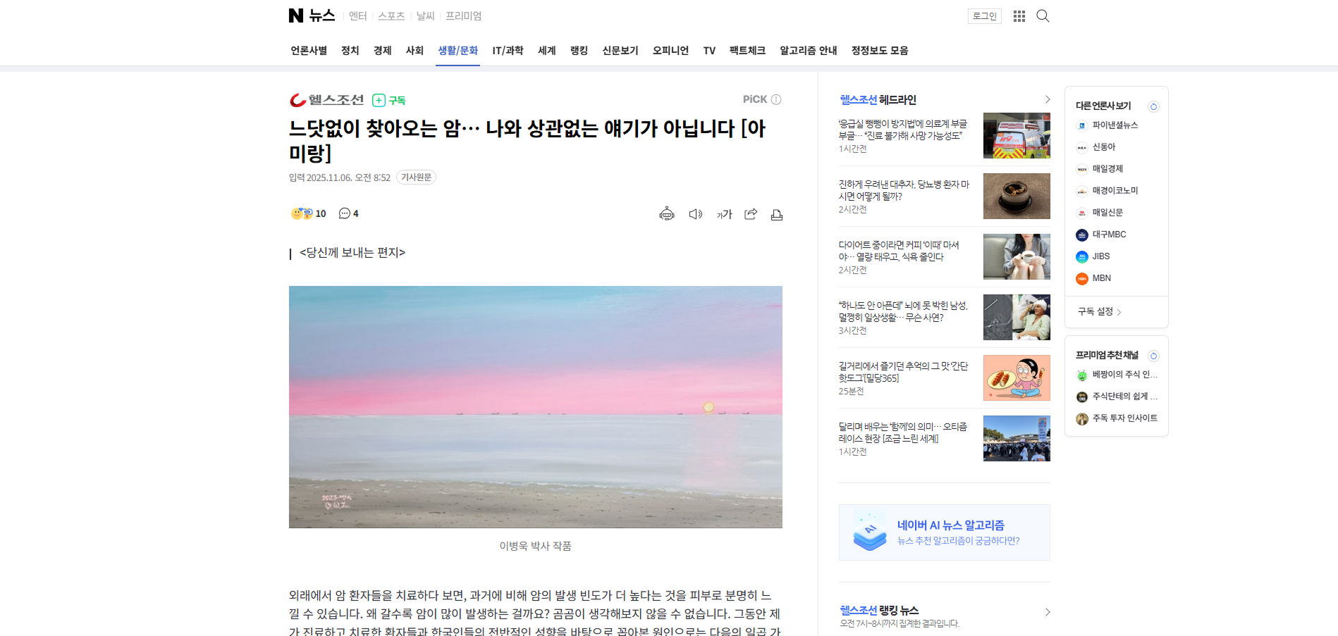 느닷없이 찾아오는 암… 나와 상관없는 얘기가 아닙니다 [아미랑]