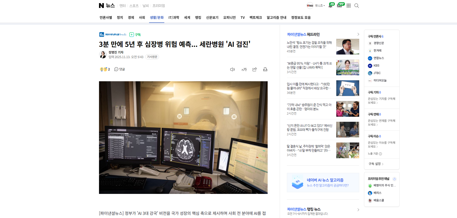 3분 만에 5년 후 심장병 위험 예측... 세란병원 'AI 검진'