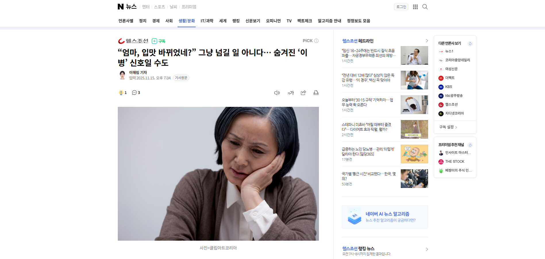 “엄마, 입맛 바뀌었네?” 그냥 넘길 일 아니다… 숨겨진 ‘이 병’ 신호일 수도