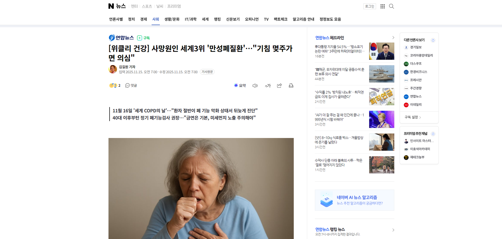 ![만성폐쇄성폐질환(COPD) [자료 이미지]](https://imgnews.pstatic.net/image/001/2025/11/15/AKR20251114115300530_01_i_P4_20251115070016275.jpg?type=w860)