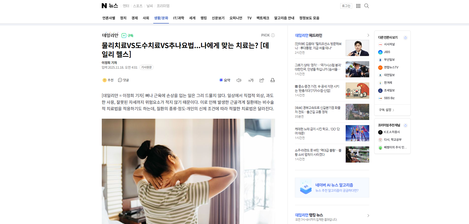 물리치료VS도수치료VS추나요법...나에게 맞는 치료는? [데일리 헬스]
