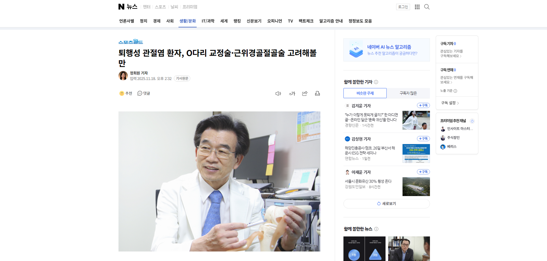 퇴행성 관절염 환자, O다리 교정술·근위경골절골술 고려해볼만