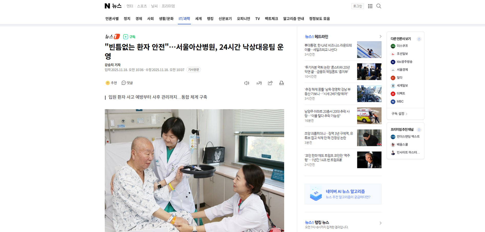 "빈틈없는 환자 안전"…서울아산병원, 24시간 낙상대응팀 운영