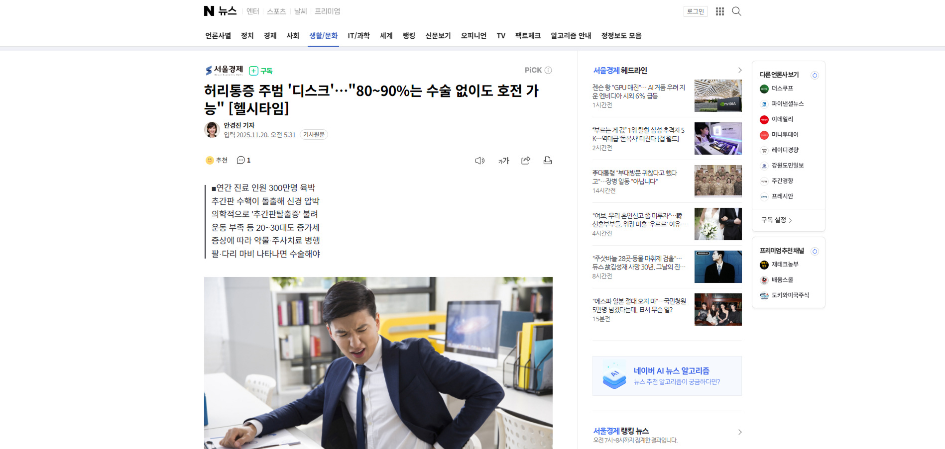 허리통증 주범 '디스크'…"80~90%는 수술 없이도 호전 가능" [헬시타임]