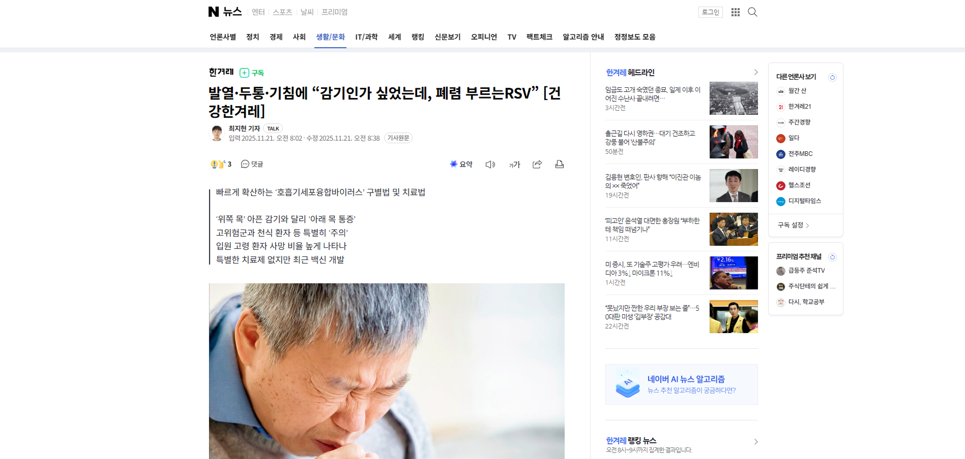 발열·두통·기침에 “감기인가 싶었는데, 폐렴 부르는RSV” [건강한겨레]