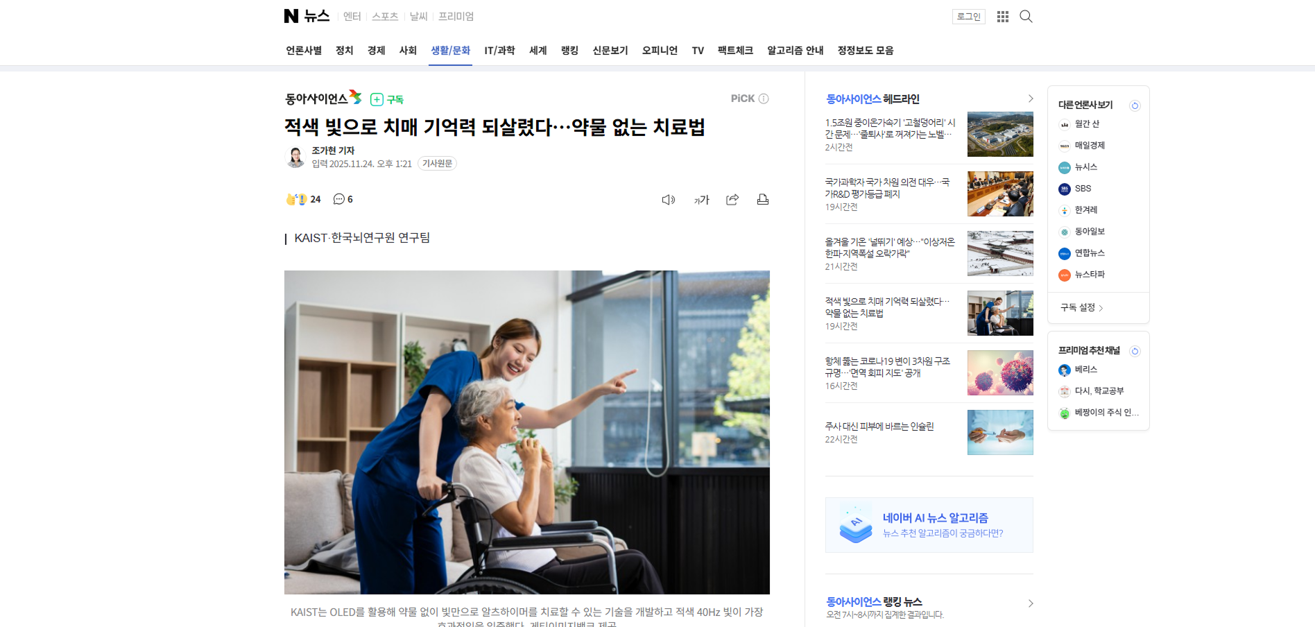 적색 빛으로 치매 기억력 되살렸다…약물 없는 치료법