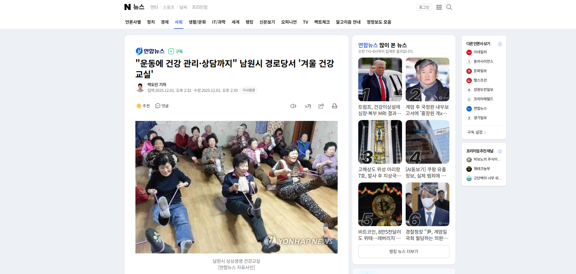 ![남원시 싱싱생생 건강교실 [연합뉴스 자료사진]](https://imgnews.pstatic.net/image/001/2025/12/01/AKR20251201100500055_01_i_P4_20251201143312816.jpg?type=w860)
