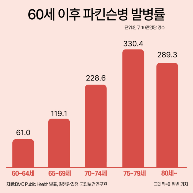 질병관리청은 전 세계 파킨슨병 환자 수가 2021년 1177만명에서 2050년에는 2500만명으로 두배 이상 늘어날 것으로 전망했다. 고령 인구가 늘수록 환자도 함께 증가한다는 의미다.