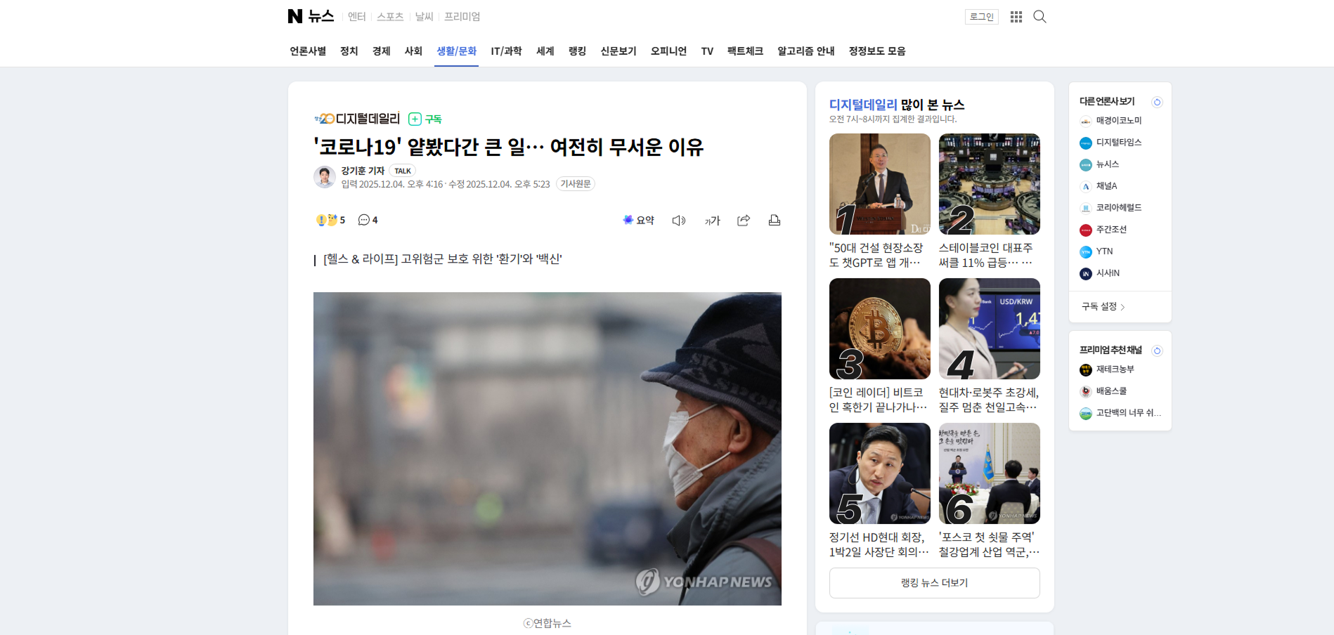 코로나19는 이제 독감처럼 관리해야 하는 감염병이 됐다. 고위험군 보호를 위해 백신 접종을 적기에 완료하고 개인위생 수칙 및 환기 습관을 꾸준히 유지하는 것이 필수적이다. 연말연시를 맞아 모두가 건강하고 안전한 겨울을 보내기 위해서는 개개인의 경각심과 책임감 있는 예방 노력이 가장 중요하다.