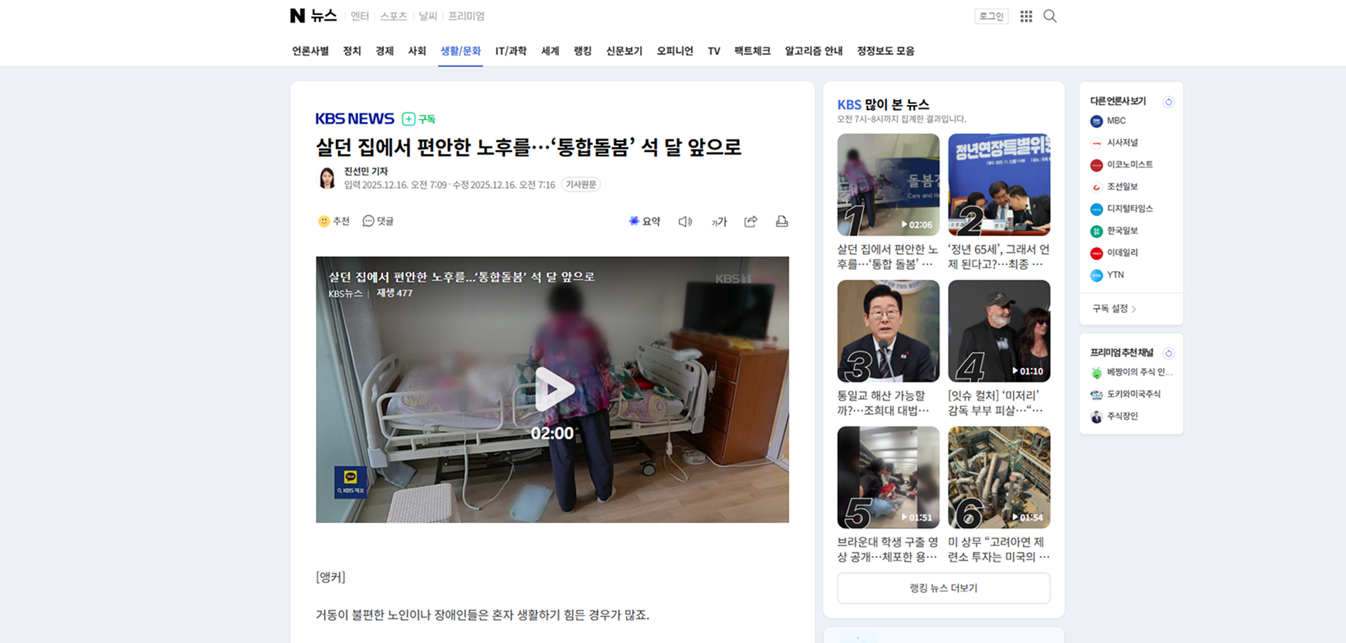 거동이 불편한 노인이나 장애인들은 혼자 생활하기 힘든 경우가 많죠.