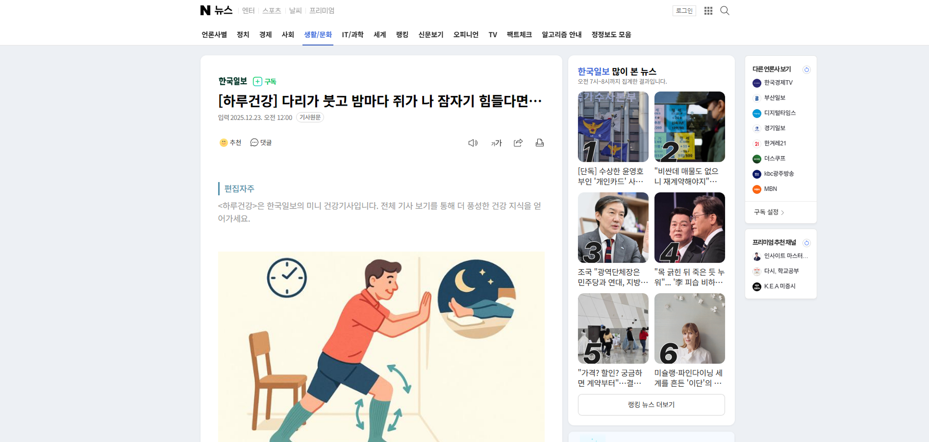 [하루건강] 다리가 붓고 밤마다 쥐가 나 잠자기 힘들다면…