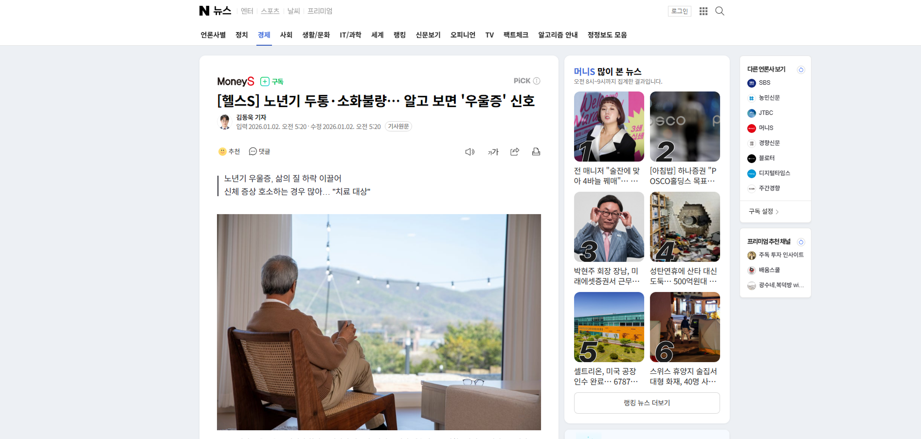 [헬스S] 노년기 두통·소화불량… 알고 보면 '우울증' 신호