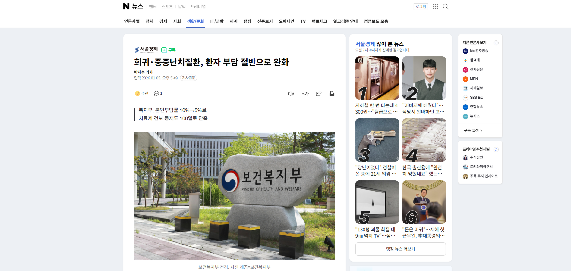 희귀·중증난치질환, 환자 부담 절반으로 완화