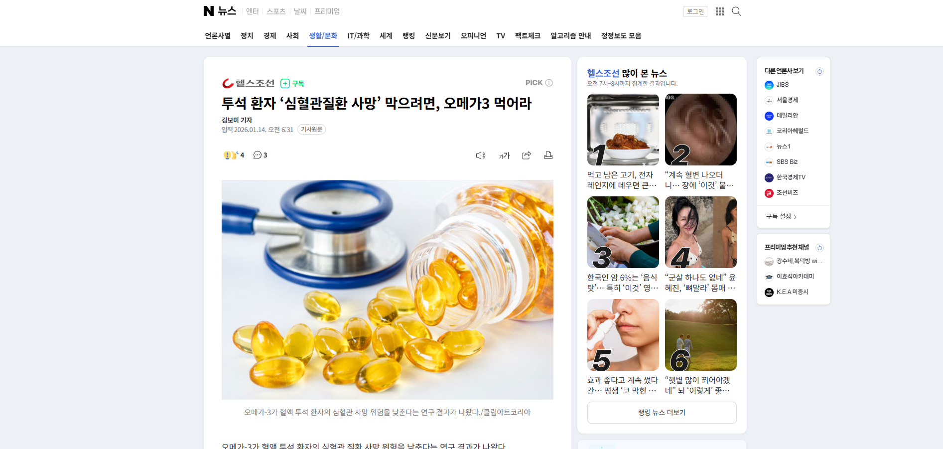 투석 환자 ‘심혈관질환 사망’ 막으려면, 오메가3 먹어라