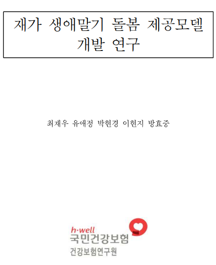 관련해 건강보험연구원은 “생애말기 환자는 노인장기요양보험 월 한도액을 초과해서 추가 서비스를 이용하도록 지원하고, 추가 서비스 이용에 대해 동일한 본인부담률을 적용하거나 추가 이용시간에 따른 본인부담률 차등 적용을 검토해볼 수 있다”고 제언했다.