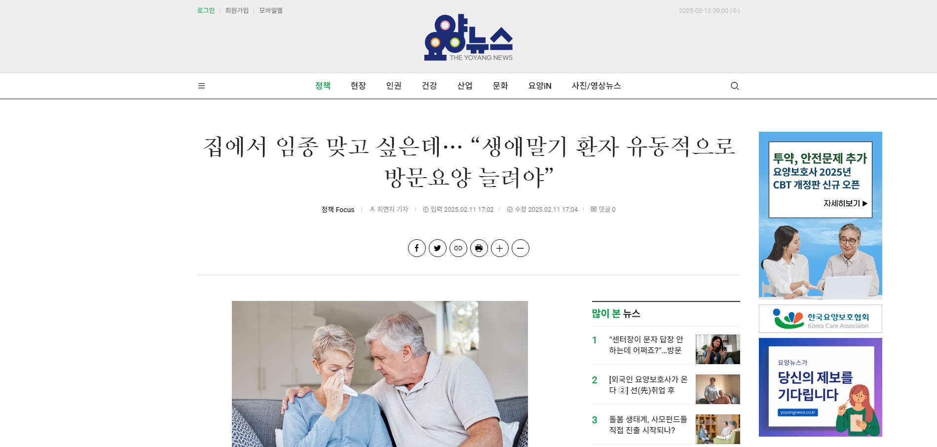 집에서 임종 맞고 싶은데… “생애말기 환자 유동적으로 방문요양 늘려야”