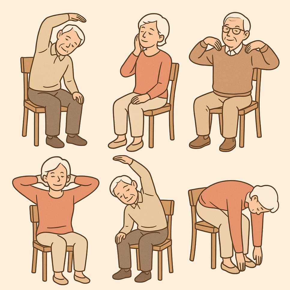 [실버인 요양정보] 어깨·목·허리 통증이 많은 어르신을 위한 안전 스트레칭 6가지